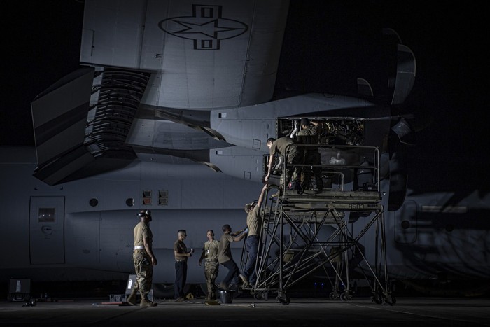 Karya Chris Hibben lainnya yang menampilkan Staf Angkatan Udara AS Sersan. Brandon King, seorang loadmaster yang ditugaskan ke Skuadron Airlift Ekspedisi ke-75 (EAS ke-75), melakukan pemeriksaan berjalan di sekitar C-130J Hercules, Camp Lemonnier, Djibouti, Foto: The Military Visual Awards