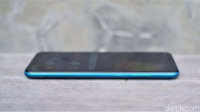 Ponsel ini dibekali sidik jari di bagian belakang body. Dukungan dual SIM slot + microSD, dan tata suara Dolby Atmos. Foto: Adi Fida Rahman/detikINET