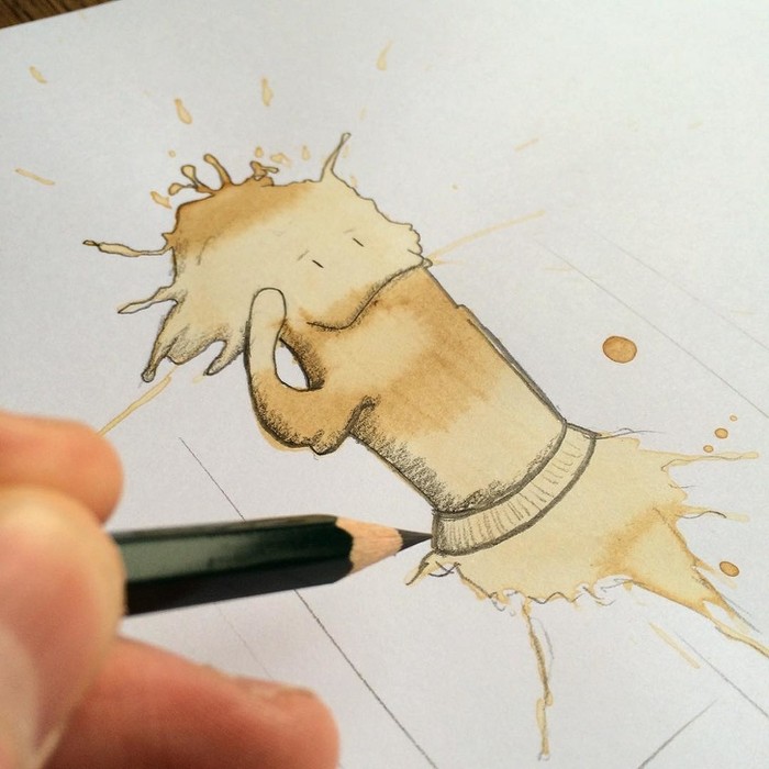 Idenya berawal dari ketika ia menumpuhkan kopi di atas lembaran kertas saat di kantor dan hal tersebut justru mengubahnya menjadi sebuah gambar. (Foto: Stefan Kuhnigk)