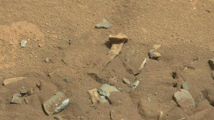Yang lagi heboh belakangan ini, foto objek mirip tulang kaki manusia yang ditangkap oleh robot Curiosity pada tahun 2014. NASA menjelaskan objek ini kemungkinan besar bebatuan yang dibentuk oleh erosi dari air atau angin. Foto:Β NASA/JPL-Caltech/MSSS
