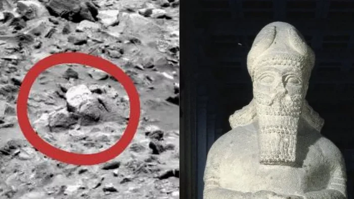 Penampakan objek yang mirip kepala Dewa Assyria juga sempat membuat heboh. Lagi-lagi ini hanya bebatuan yang terlihat mirip kepala karena imajinasi dan pencahayaan. Foto: NASA/British Museum