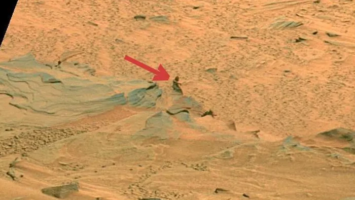 Robot Curiosity menangkap foto objek yang terlihat seperti perempuan di permukaan Mars. Tentu saja ini hanya bebatuan Mars yang digabung dengan imajinasi menjadikannya terlihat seperti manusia. Foto: NASA/JPL