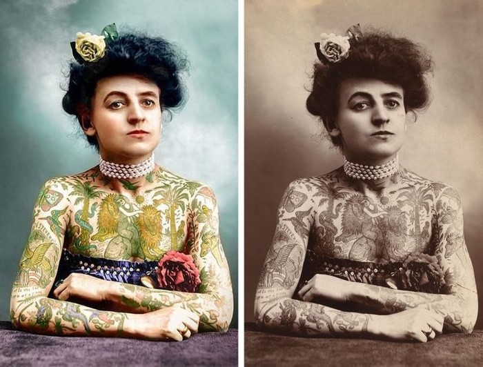 Foto wanita bertato tahun 1905. (: Brightside)