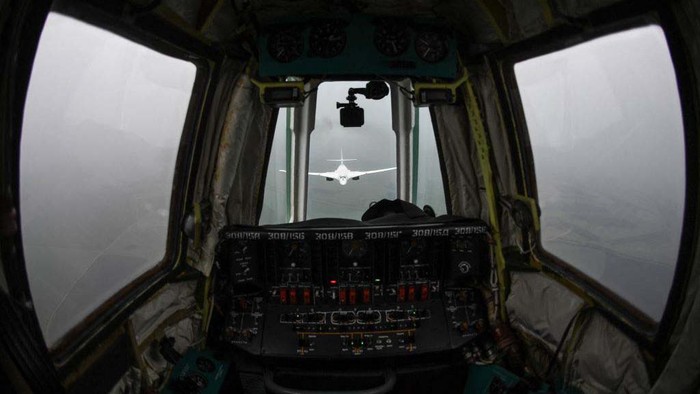 Begini aksi Tupolev Tu-160 saat melintas di lait Moskow, Rusia, pada parada kemenangan Uni Soviet atas Nazi pada 24 Juni lalu.