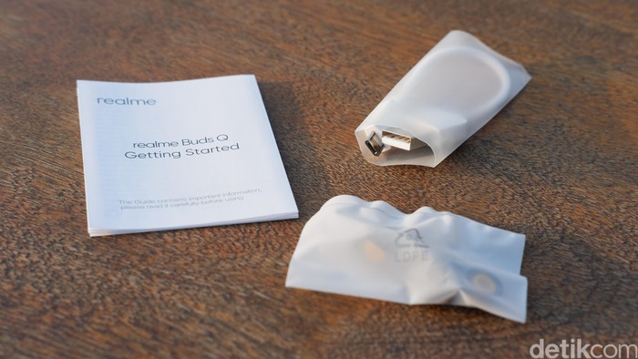 Dalam paket penjualannya hanya disertakan kabel charger, eartips dan buku petunjuk. Foto: Adi Fida Rahman/detikINET