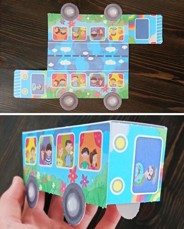 Perhatikan baik-baik, ada jalan dan awan di atap bus? Lalu posisi sopir bus juga tak semestinya. (Foto: Brightside)