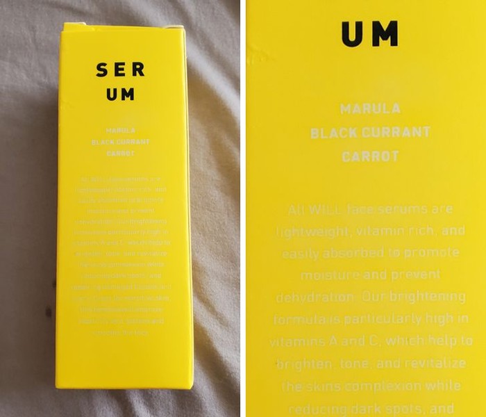 Ada yang bisa baca komposisi dari serum ini? Yap produk ini menggunakan tulisan berwarna silver yang tak terlihat. (Foto: Brightside)