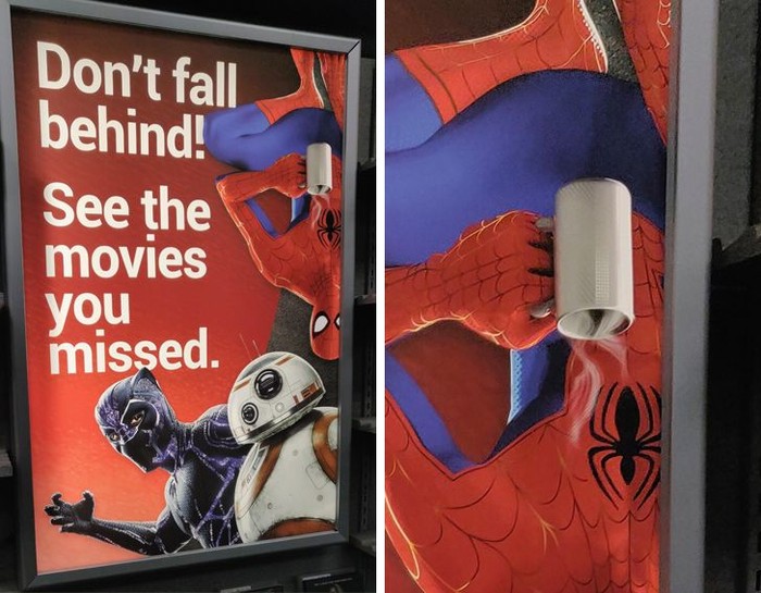 Perhatikan gelas yang dipegang Spiderman. (Foto: Brightside)