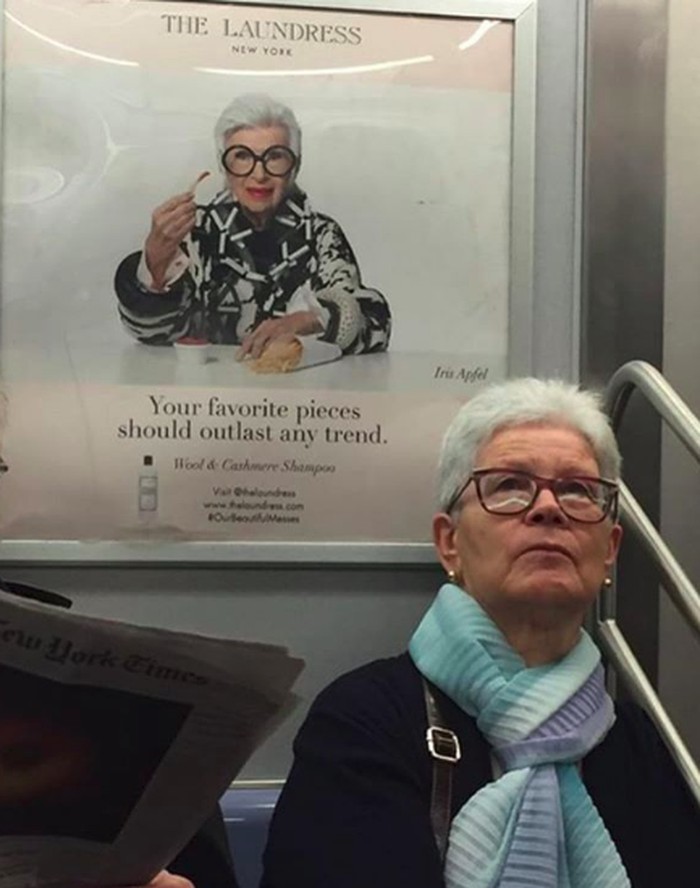 Grandma modis mirip dengan foto di belakangnya. Foto: Instagram/@subwaycreatures