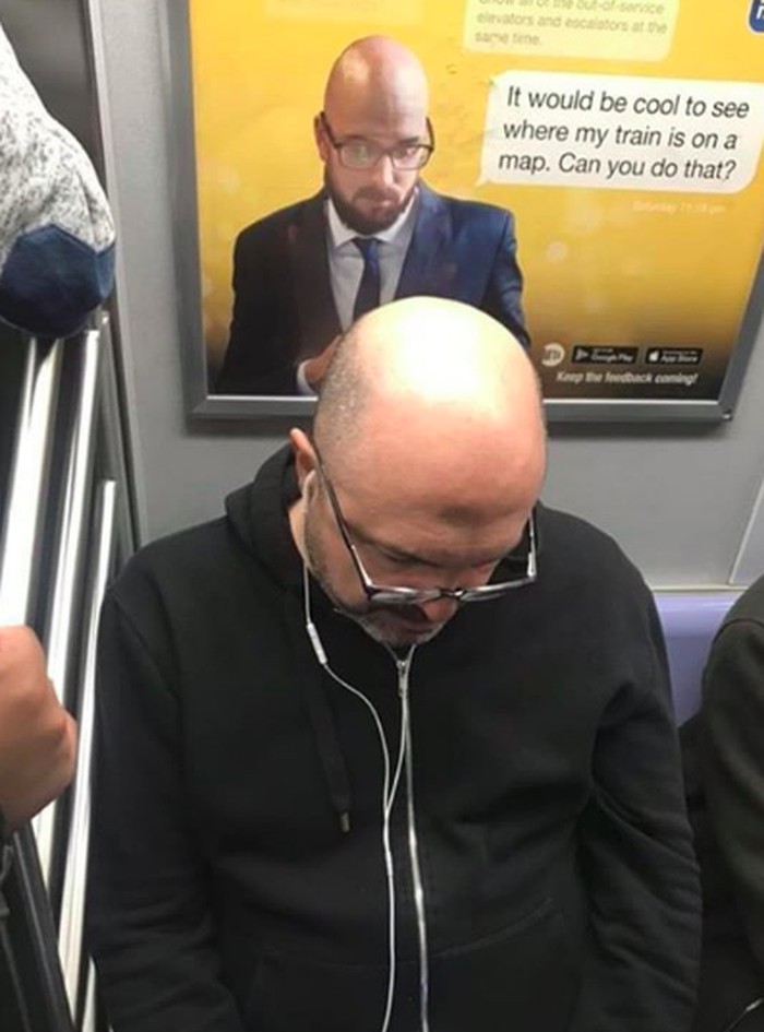 Jakarta - Deretan orang ini tidak sengaja bertemu dengan 'kembaran' mereka -- model iklan yang ada di subway. Berikut ini foto kocaknya.