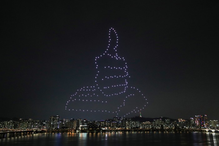 Pertunjukan drone ini dilakukan di Sungai Han di kota Seoul pada Sabtu pekan lalu. Foto: Ministry of Land, Infrastructure and Transport