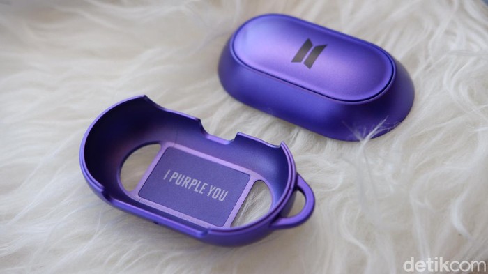 Galaxy Buds+ BTS Edition dikemas dalam kota khusus. Foto: Adi Fida Rahman/detikINET
