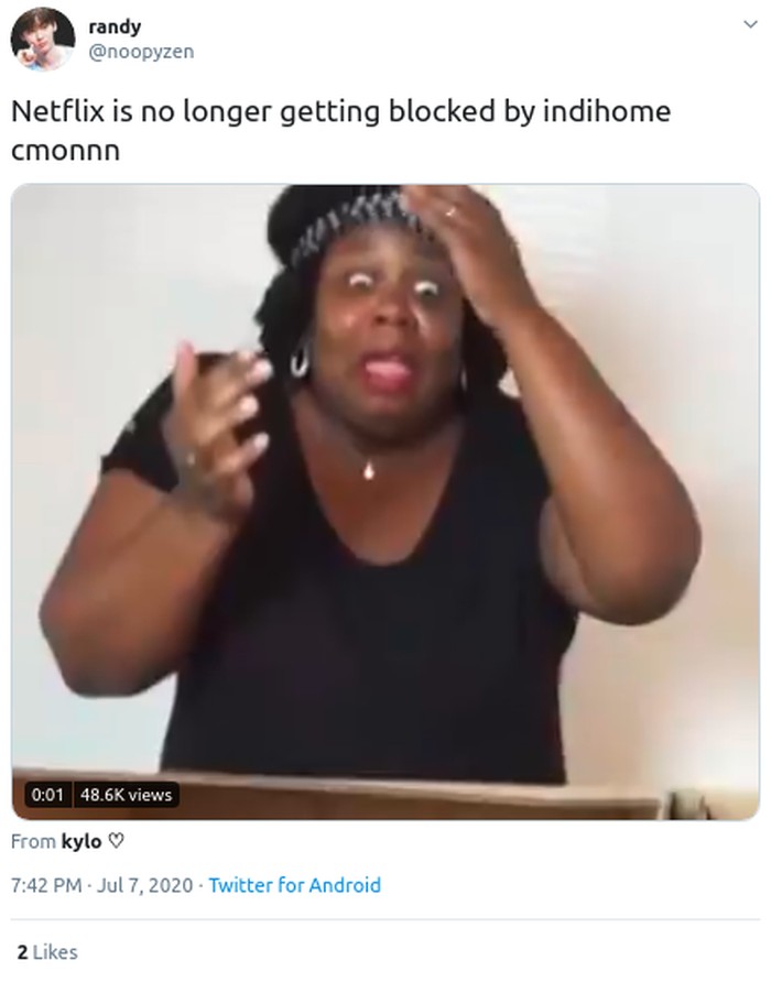 Indihome akhirnya buka blokir Netflix. Begitu dibuka, beramai-ramai orang merayakan. Foto: @huppblups via Twitter