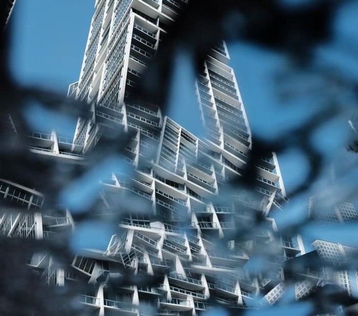 Refleksi sebuah bangunan dalam kaca yang hancur. (Foto: Brightside)