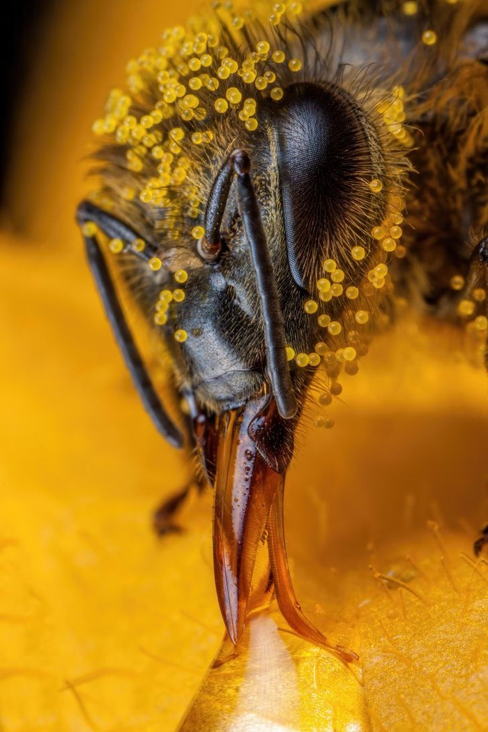 Ada empat lebah tidur siang di dalam bunga. (Foto: Brightside)