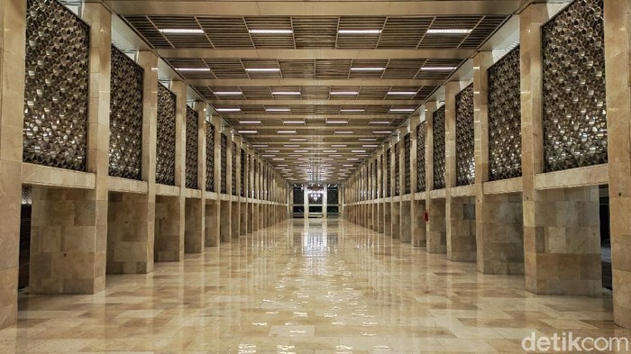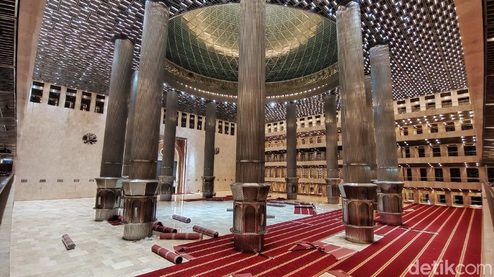 Masjid Istiqlal jadi kinclong, terang benderang dan kesannya megah dan cantik. (Fitraya Ramadhanny/detikcom)