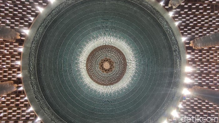 Untuk kubah dalam memakai teknologi Dynamic White sebanyak 192 lampu. Kubah dalam Masjid Istiqlal bisa berubah warna dari full white ke warm white yang bernuansa agak kuning. (Fitraya Ramadhanny/detikcom)