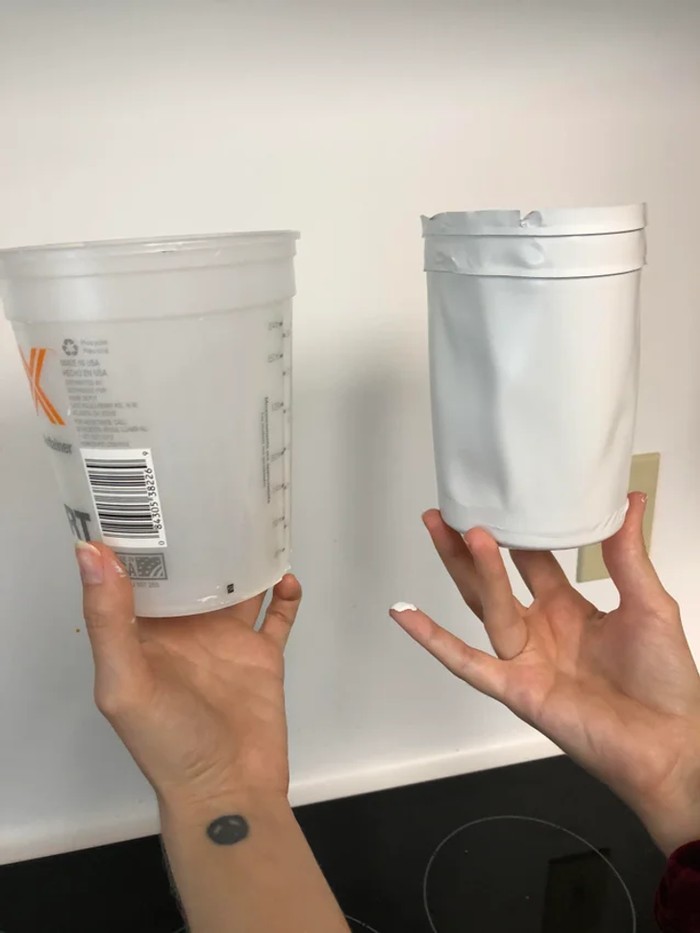 "Bentuk cat (kanan) yang kering keluar dari wadahnya" Foto: Boredpanda