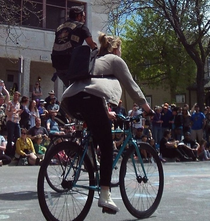 "Terlihat seorang pria mungil mengendarai seorang wanita di atas sepeda" Foto: Brightside