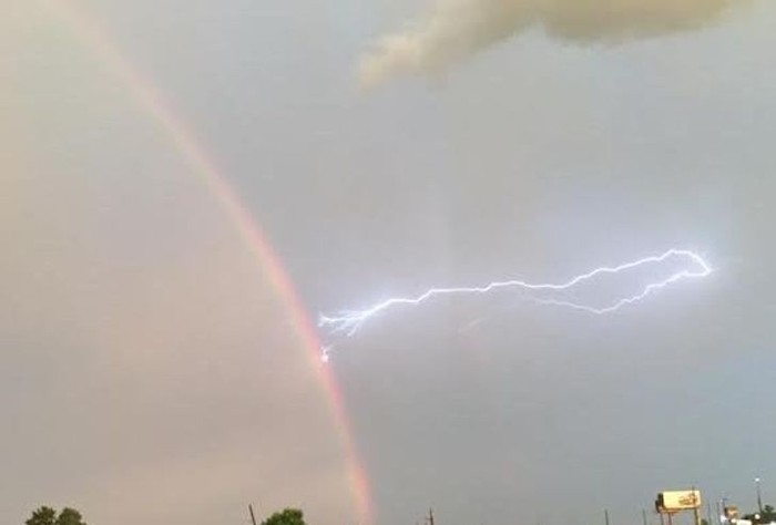 Tampak petir menyambar pelangi. (Foto: Brightside)