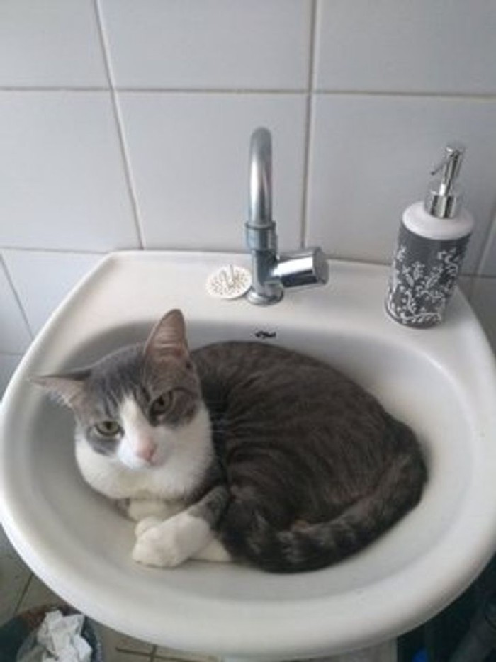 Wastafel ini sepertinya nyaman banget ya buat si meong. (Foto: Brightside)