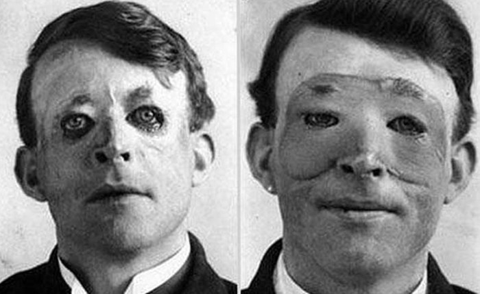 Pada foto ini adalah Walter Yeo di tahun 1917. Dia menjalani operasi plastik yang dinamakan 'skin flap'. Operasi ini dilakukan untuk menyembunyikan luka akibat perang yang mengerikan. Namun agak sulit membedakan mana kondisi sebelum dan sesudah operasi pada foto ini. Foto: via Daily Forest