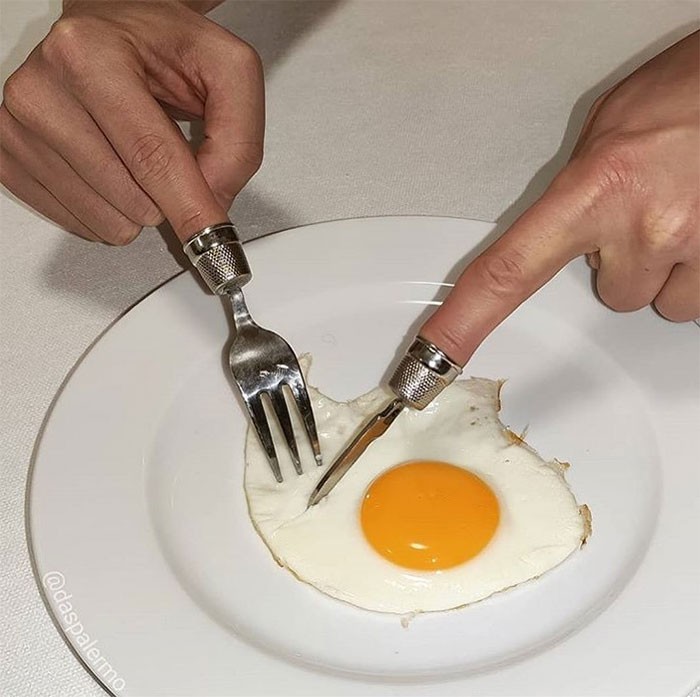 Garpu dan pisau mini yang dioperasikan dengan jari. Foto: Bored Panda