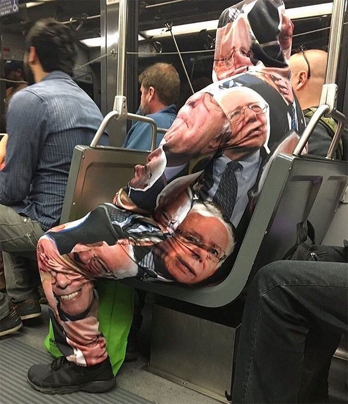 Jaket yang seluruh sudutnya ada gambar wajah politisi Amerika Serikat, Bernie Sanders. Foto: Bored Panda
