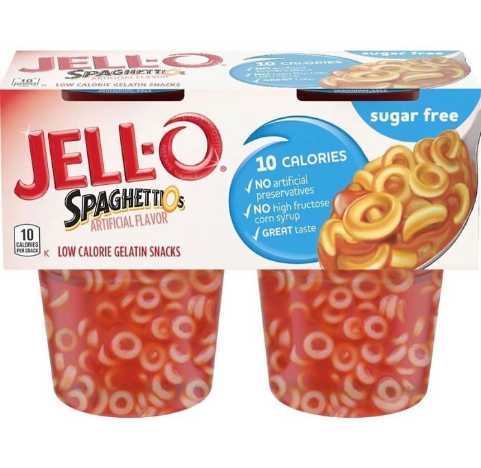 Yang mau, yang mau, Jell-o dengan spagetti. Tapi, benar ada nih? Foto: worst.buy via Bored Panda