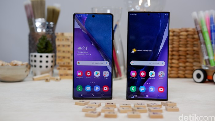 Tampilan depan Galaxy Note 20 (kiri) dan Note 20 Ultra (kanan). Foto: Adi Fida Rahman/detikINET