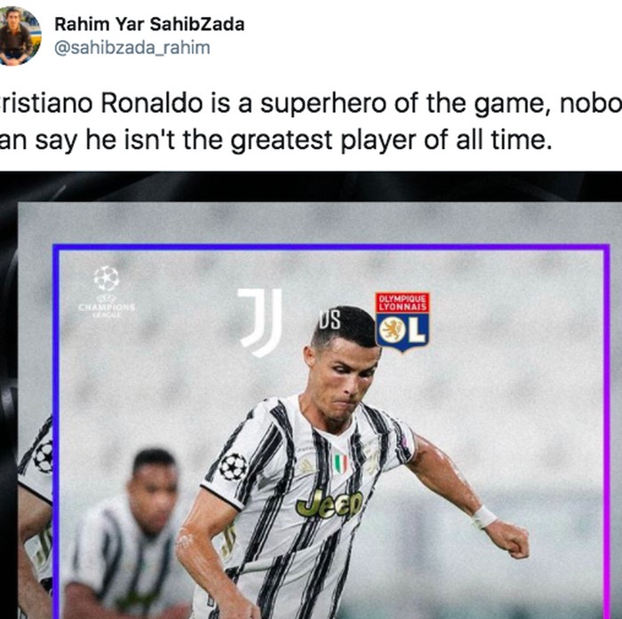 Dengan kegagalan Juve, inilah pertama kalinya Ronaldo tidak berlaag di perempatfinal Liga Champion. Foto: Twitter