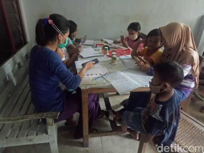 Banyak upaya swadaya yang patut diacungi jempol untuk membantu belajar online. Warung pecel pun sampai memberikan layanan internet gratis. (Erliana Riady/detikcom)