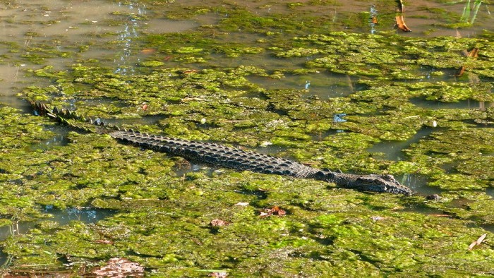 Buaya bersembunyi di antara tumbuhan air di muara, kalau begini makin susah kelihatannya (Getty Images/iStockphoto)