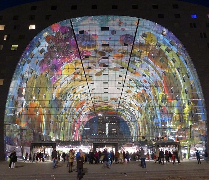 Aula pasar yang malam hari berubah jadi lukisan. Foto: Brightside