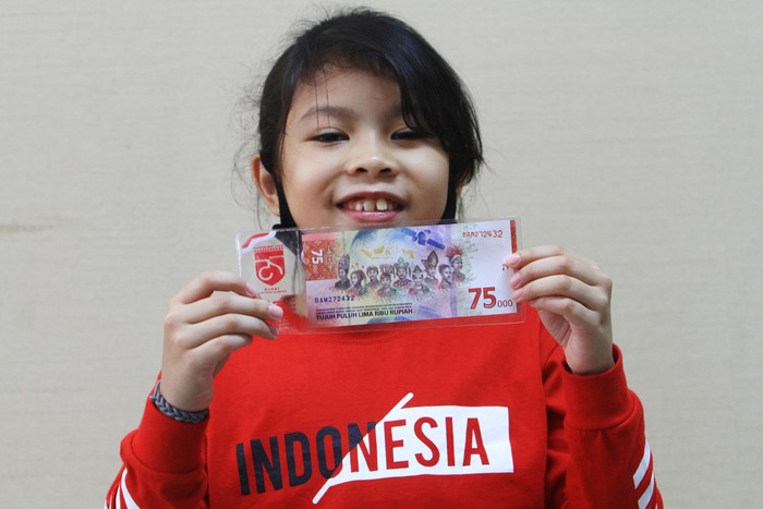 Kemudian teknologi khusus juga digunakan pada gambar anggrek bulan serta pada tanda air pada uang khusus edisi kemerdekaan ini. ANTARA FOTO/Seno Β