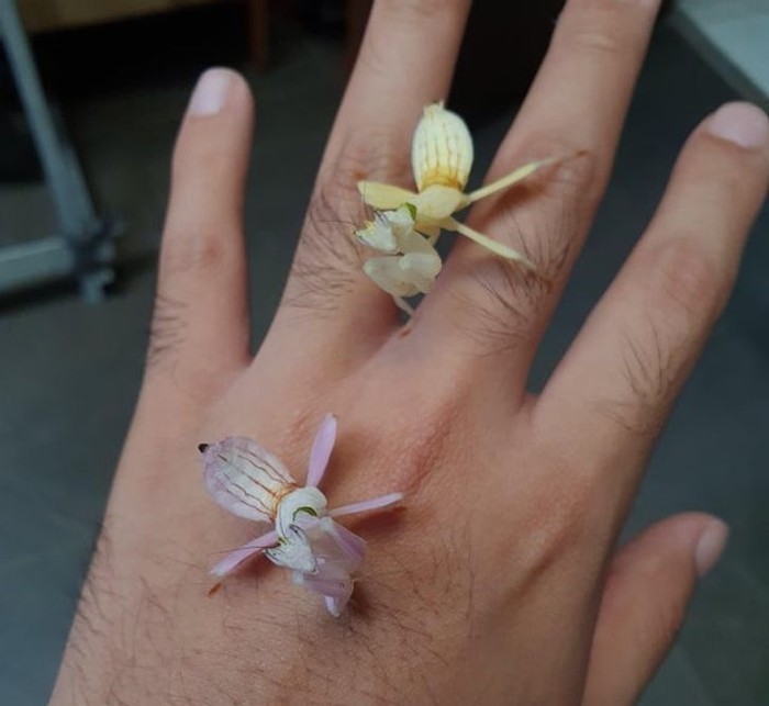 'Jika menurut kamu ini adalah bunga, coba lihat sekali lagi. Ada satu belalang merah mudah dan satu kuning' Foto: Brightside