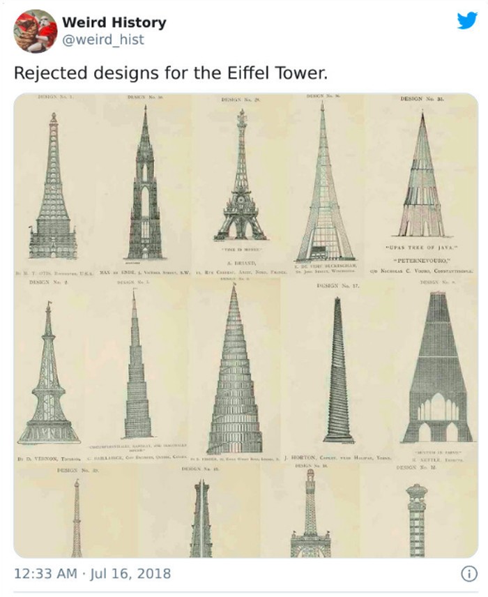 Kebayang tidak kalau Menara Eiffel punya desain yang berbeda? Foto: weird_hist via Bored Panda