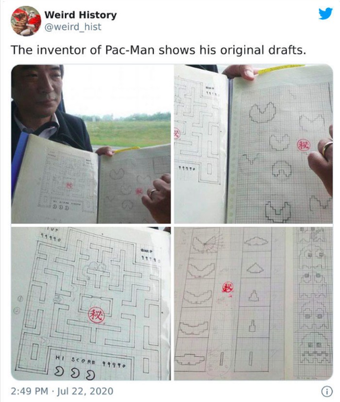 Draft dari game bersejarah, Pac-Man. Foto: weird_hist via Bored Panda