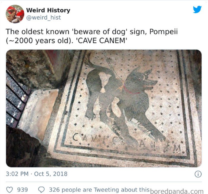 Tanda 'Awas Ada Anjing' tertua yang pernah ada. Foto: weird_hist via Bored Panda