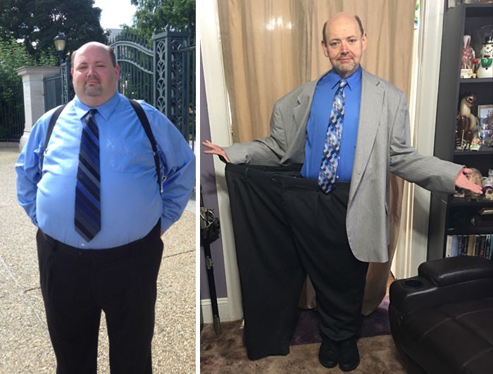 "300 pound > 164 pound = 136 pound (61 kg). Kemajuan berat badanku" Foto: Boredpanda