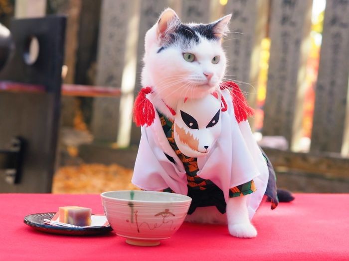 Seorang pria asal Jepang membuat akun Twitter @YagyouNEKO khusus yang didedikasikan untuk kucing dengan berpakaian cosplaynya. Foto: Twitter/YagyouNEKO