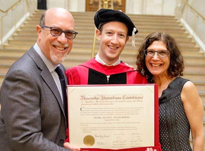 Zuckerberg juga selalu berbakti pada kedua orang tuanya. Ini saat mereka merayakan gelar sarjana kehormatan Zuckerberg dari Universitas Harvard. Foto: Instagram