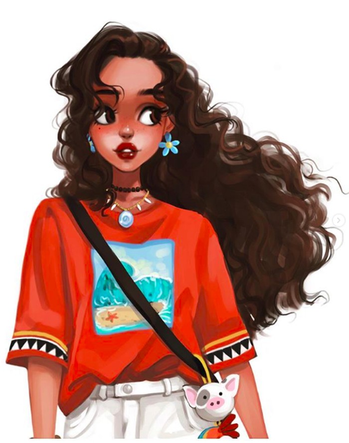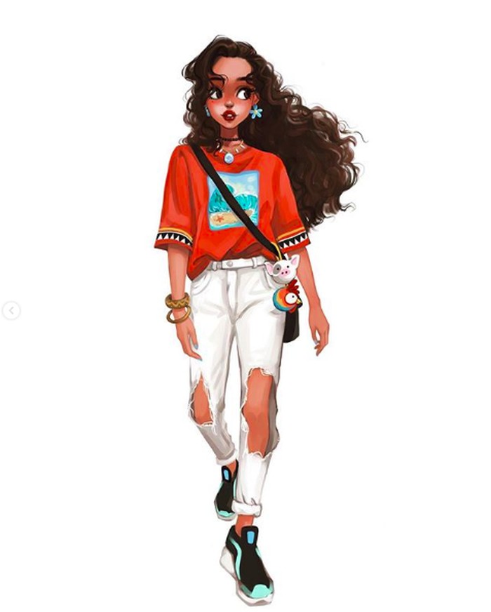Dengan kemampuan menggambarnya ia mendandani karater putri Disney dengan gaya kasual. Foto: instagram/felice.xu