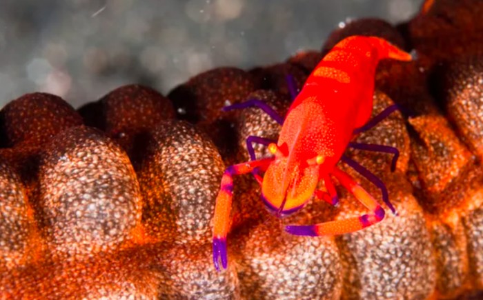 Udang Halloween: Udang unik ini merupakan parasit timun laut, dikenal dengan warna orange dan ungu yang cerah. Selain di timun laut, ia juga parasit pada binatang laut lainnya. Foto: Live Science