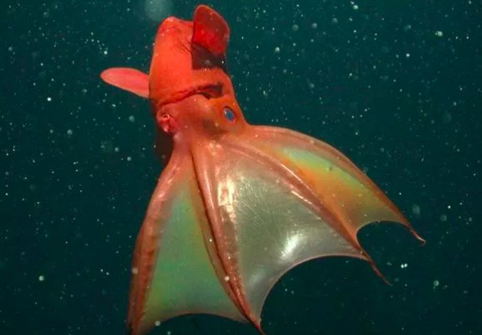Cumi-cumi vampir: Nama ilmiahnya Vampyroteuthis infernalis atau cumi vampir dari neraka karena warnanya yang merah. Walau namanya menyeramkan, ia relatif kecil, yaitu seanjang 15,4 cm. Sebenarnya, hewan ini bukanlah cumi atau girta, melainkan spesies tersendiri. Foto: Live Science