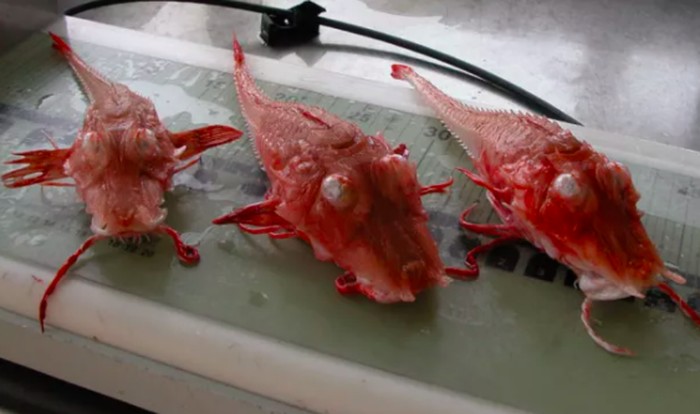 Anglerfish: Bernama ilmiah Lasiognathus dinema, ikan ini wujudnya benar-benar aneh. Giginya seperti jarum, kemudian ada semacam tulang yang mencuat di kepalanya. Tulang itu ada bakteri yang memancarkan cahaya untuk menarik umpan para ikan yang tertarik dengannya. Foto: Live Science