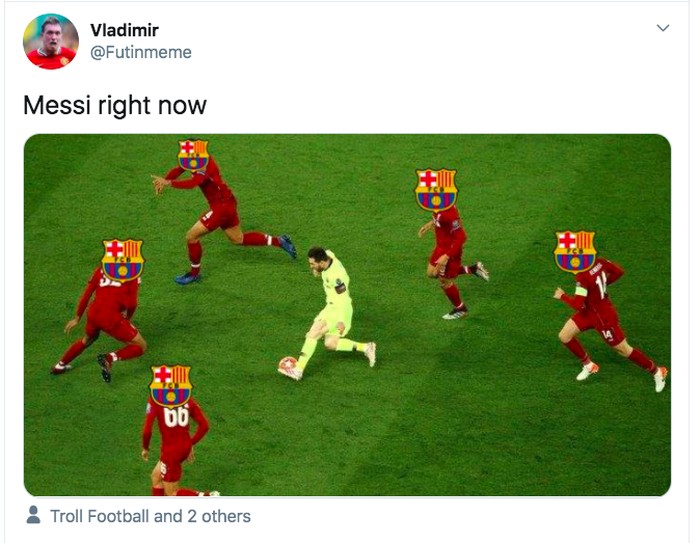 Meme ini menggambarkan Messi terpaksa bertahan karena diancam Barcelona. Foto: istimewa
