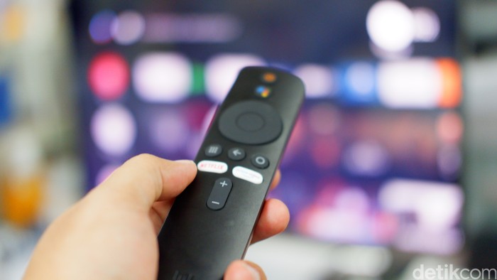Pada remote tersebut diberikan tombol khusus untuk mengakses Netflix, Google Assistant dan Prime Vide Foto: Adi Fida Rahman/detikINET