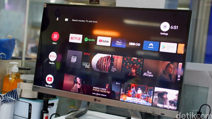 Tampilan Mi TV Stick ketika telah terhubung dengan monitor atau televisi. Foto: Adi Fida Rahman/detikINET