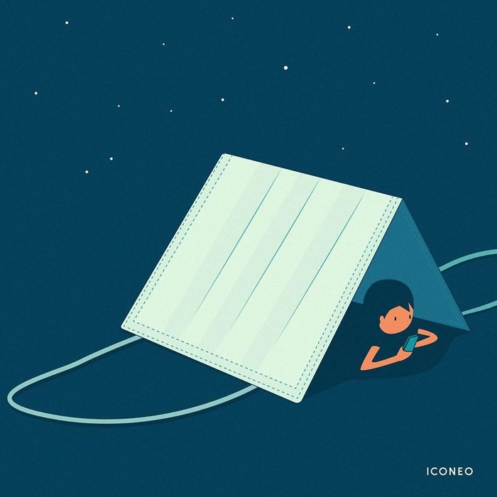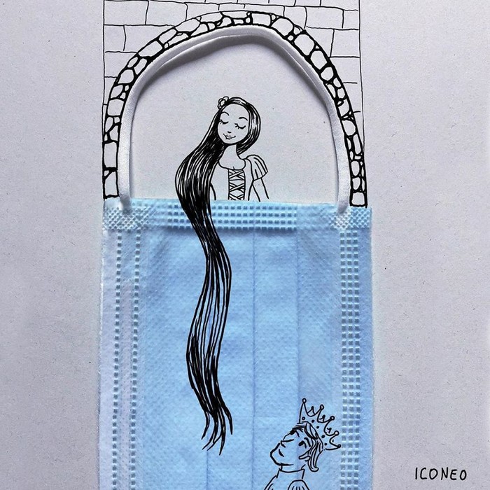 Adalah Steggen Karft seorang seniman asal Jerman yang juga dikenal sebagai ICONEO, dengan kemampuan menggambarnya ia mengintegrasikan masker wajah ke dalam sebuah ilustrasi. Foto: Instagram/iconeo